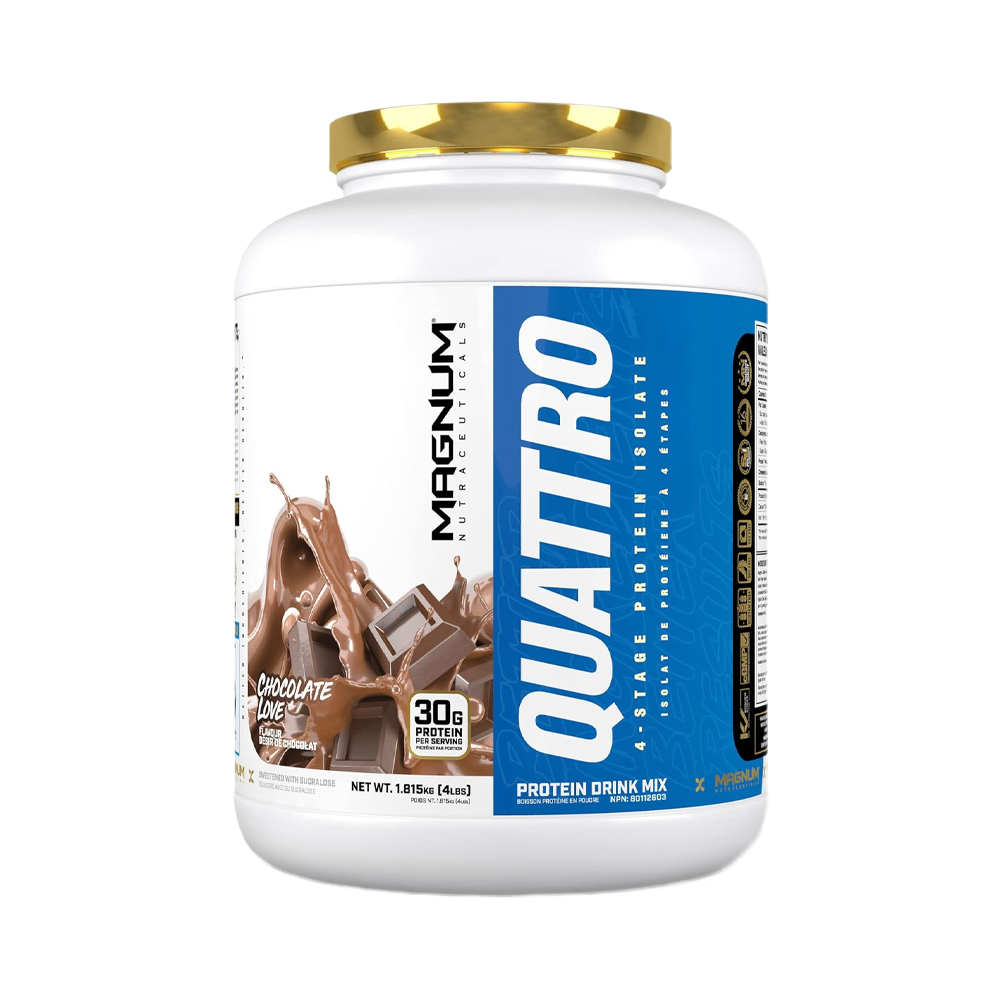 Magnum Quattro это белковый коктейль из четырех высококачественных компонентов, у каждого из этих которых своя скорость усвоения, что обеспечивает постоянное поступление аминокислот, необходимых для организма. Сывороточный и молочный протеин усваиваются практически сразу после приема, поэтому их целесообразно использовать, когда нужно быстро восполнить запасы белка, например, после интенсивного тренинга или тяжелой физической работы. Яичный протеин также быстро усваивается, но при этом насыщает организм более продолжительное время. Мицеллярный казеин обеспечивает организм постоянным потоком аминокислот, в течение многих часов. Во время сна идет активное восстановление мышечной ткани и порция добавки обеспечивает мышцы белком. Полезные свойства: • способствует как набору сухой мышечной массы, • обеспечивает удержание актуальной физической формы, • помогает поддерживать здоровый вес, • оказывает влияние на формирование чувства сытости, снижая потребность в дополнительных перекусах между о